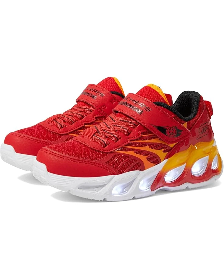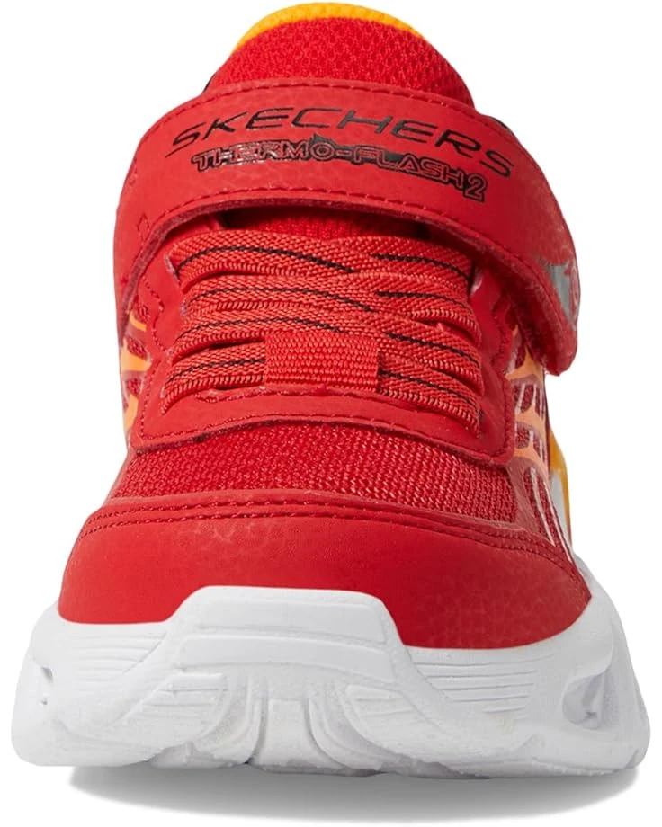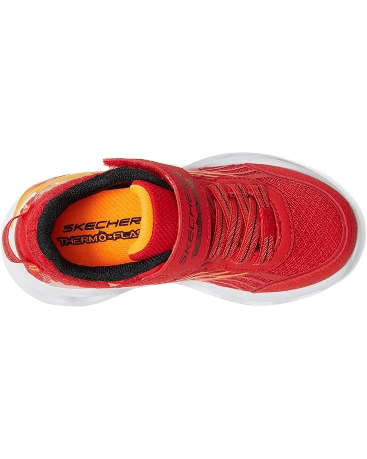 - Energize each stride styling SKECHERS® KIDS Thermo-Flash 2.0! Watch your child’s steps come alive with vibrant, light-up excitement. The shock-absorbing midsole, adorned with flame-themed tech, ensures comfort and style. The on/off light button adds convenience, while the fire-themed mesh and synthetic upper offers breathability. With stretch laces and an adjustable strap, these shoes fit perfectly. Complete with a rubber insole and flexible traction synthetic rubber outsole, it’s the ultimate blend of comfort and coolness.