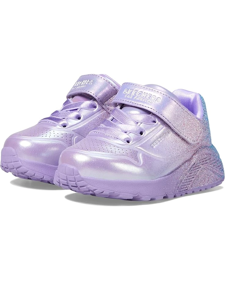 - Let your little one show adorable dance moves wearing the comfortable SKECHERS® KIDS Uno Lite – Metallic Sparkle 310394N Shoes. The footwear features glitter ombre leather upper with lace-up closure and alternative hook-and-loop strap for an adjustable fit.